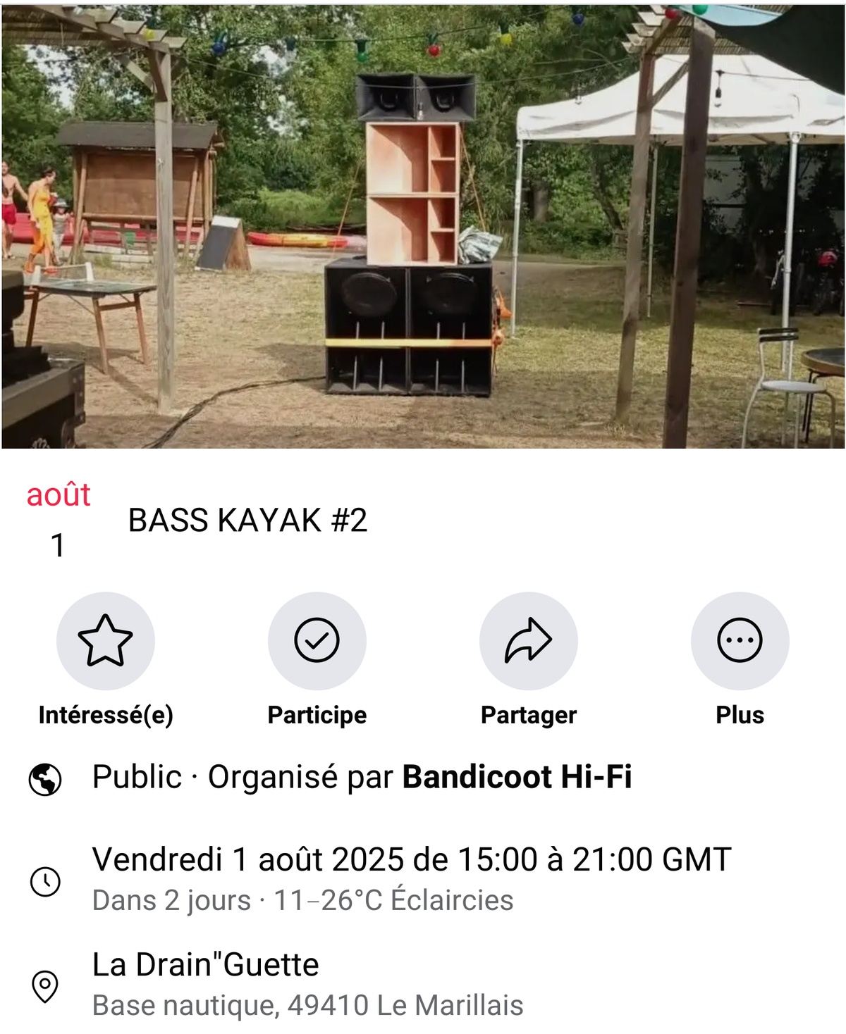 🛶 Comme d'hab si t'es tenté par une petite baignade fluviale l'Èvre est au pied de la guinguette, histoire de te rafraîchir en musique pour fêter les vacances, pour les plus chanceux 🛶